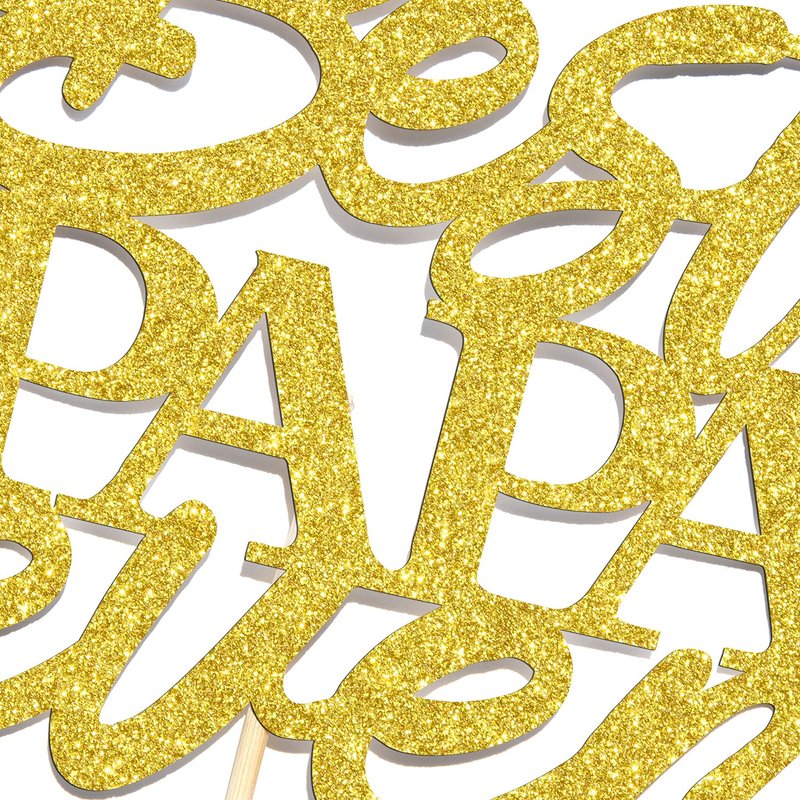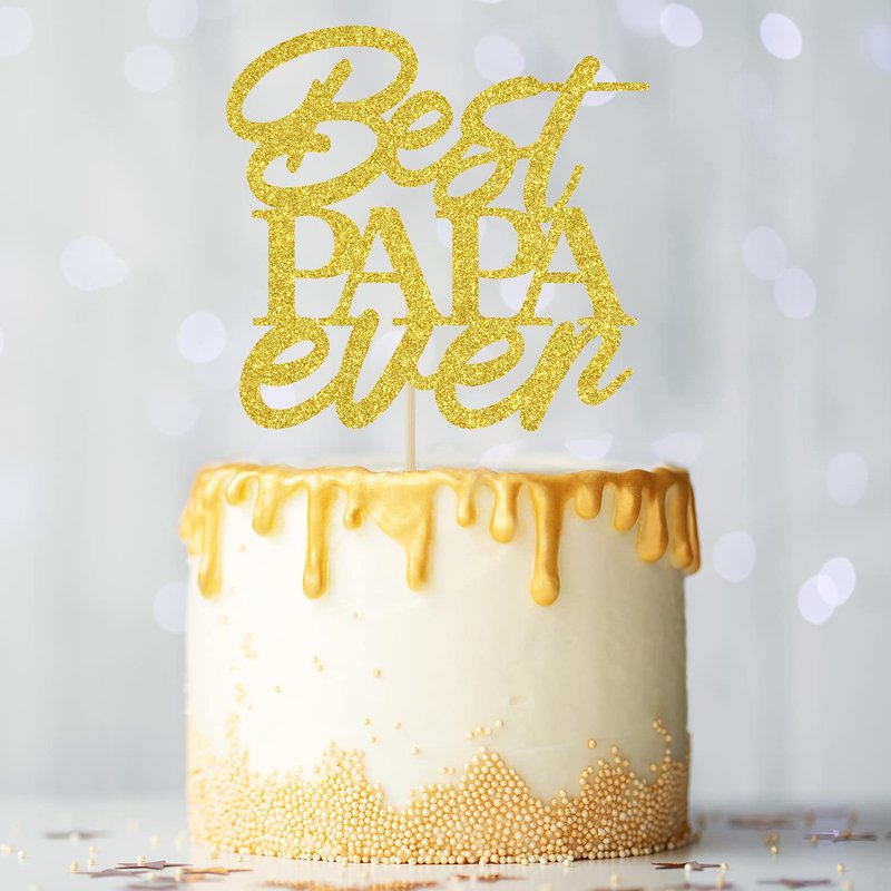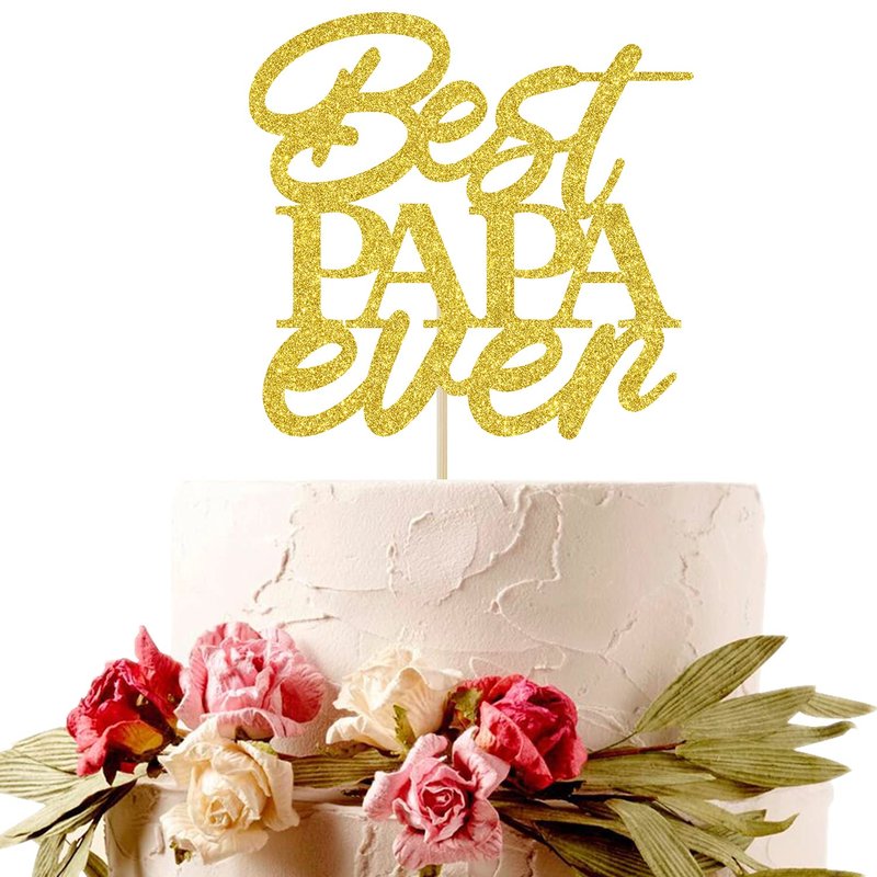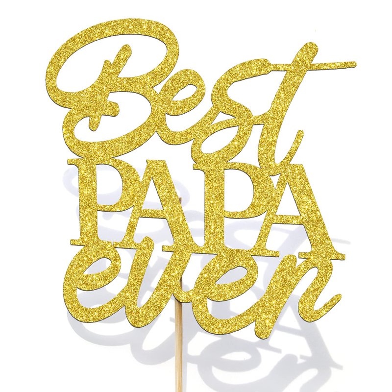 Gold Glitter Best Papa Ever Cake Topper, Happy Birthday Dad Cake Decoration for Father's Birthday, Happy Father's Day Party Supplies