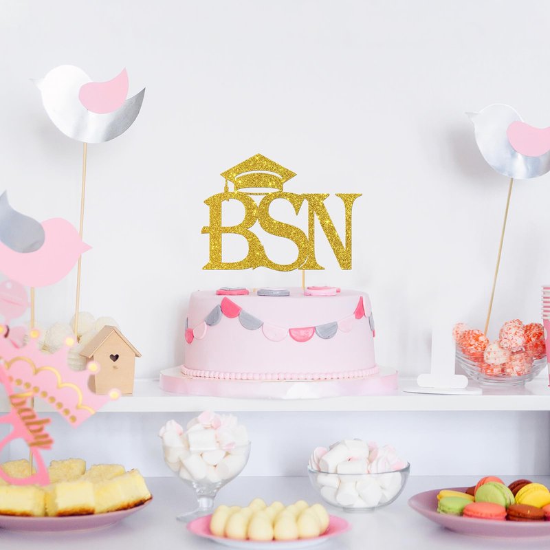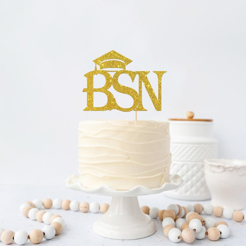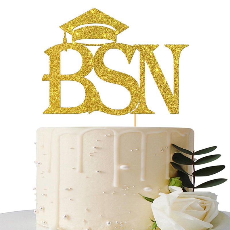 Gold Glitter BSN Cake Topper - Nurse/RN Graduation Party Decoration - Nurse Graduation Cake Decorations - Nursing Grad Party Decorations