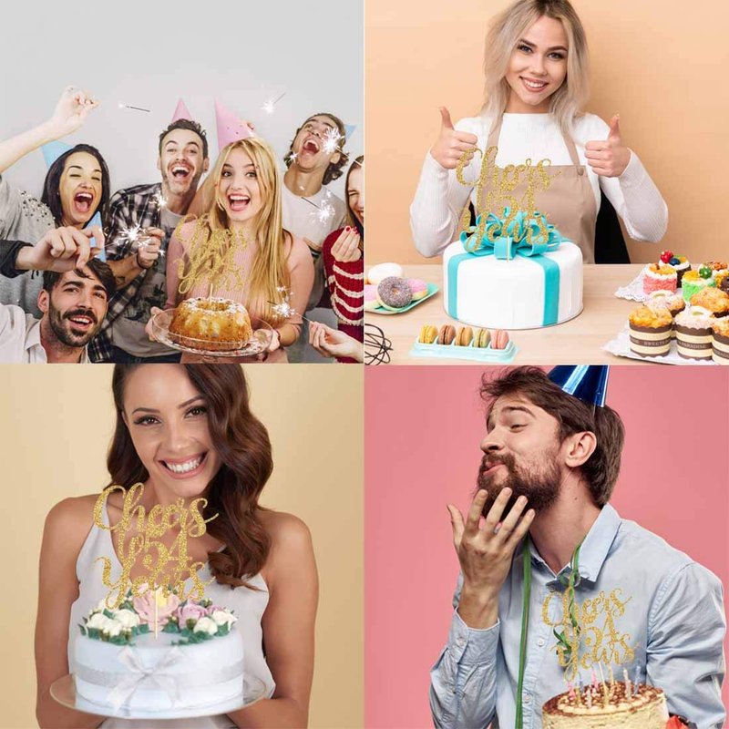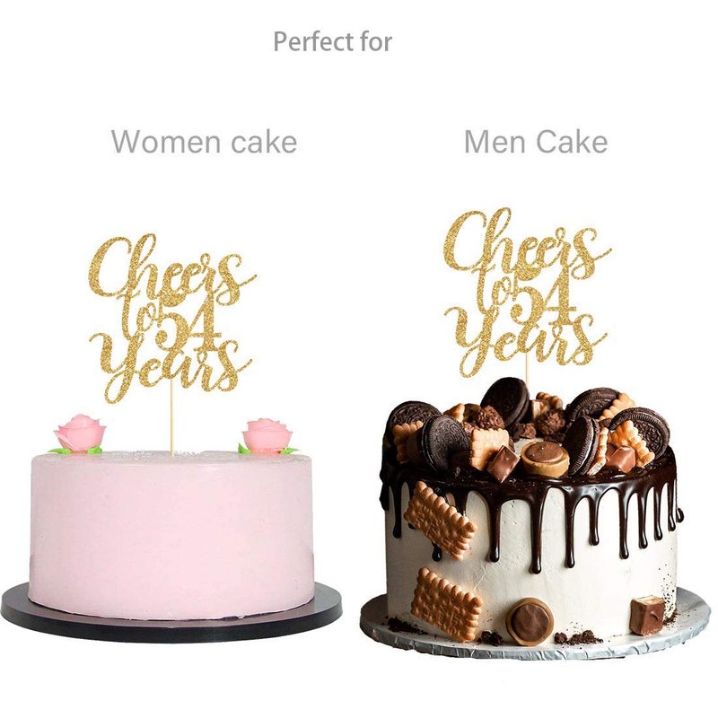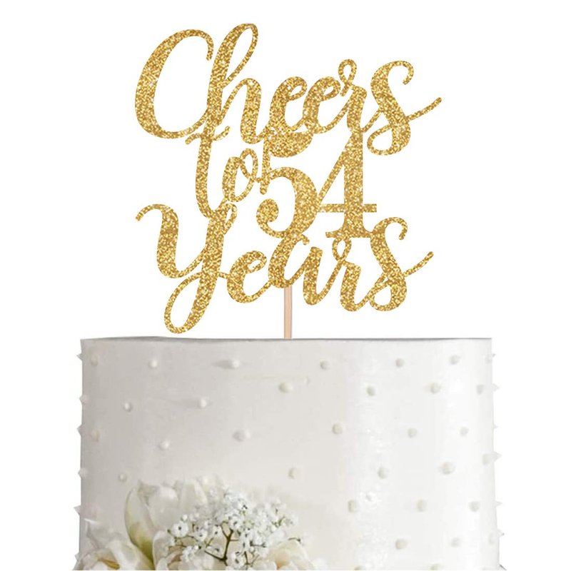 Gold Glitter Cheers to 54 years cake topper, Gold Happy 54th Birthday Cake Topper, Birthday Party Decorations, Supplies