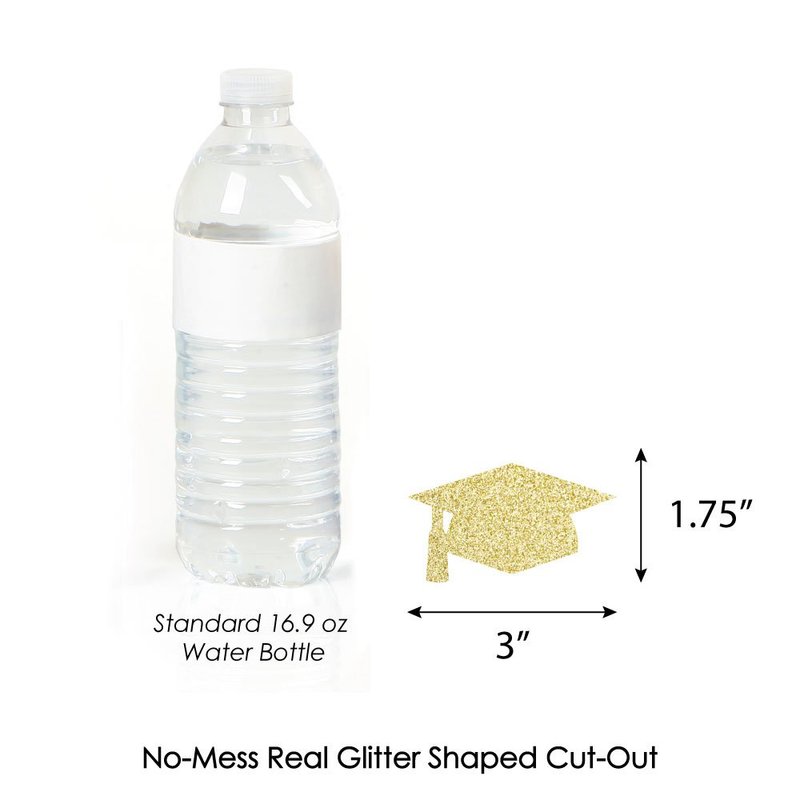 - EASY TO USE: No-mess shaped cut out glitter confetti easily attaches to the fun party straws with the included stickers. Gold Glitter Grad Cap Party Straws - No-Mess Real Gold Glitter Cut-Out & Decorative Paper Straws are quick to assemble for your grad party celebration.