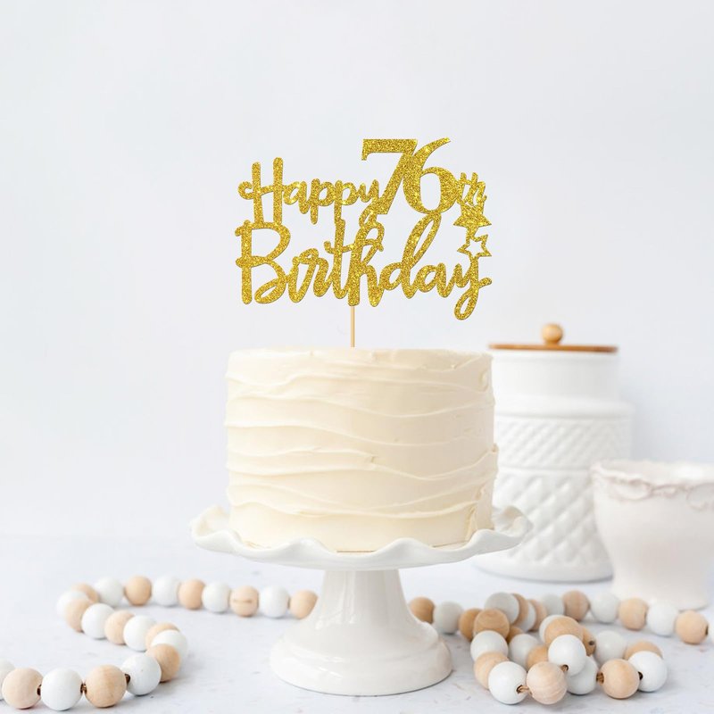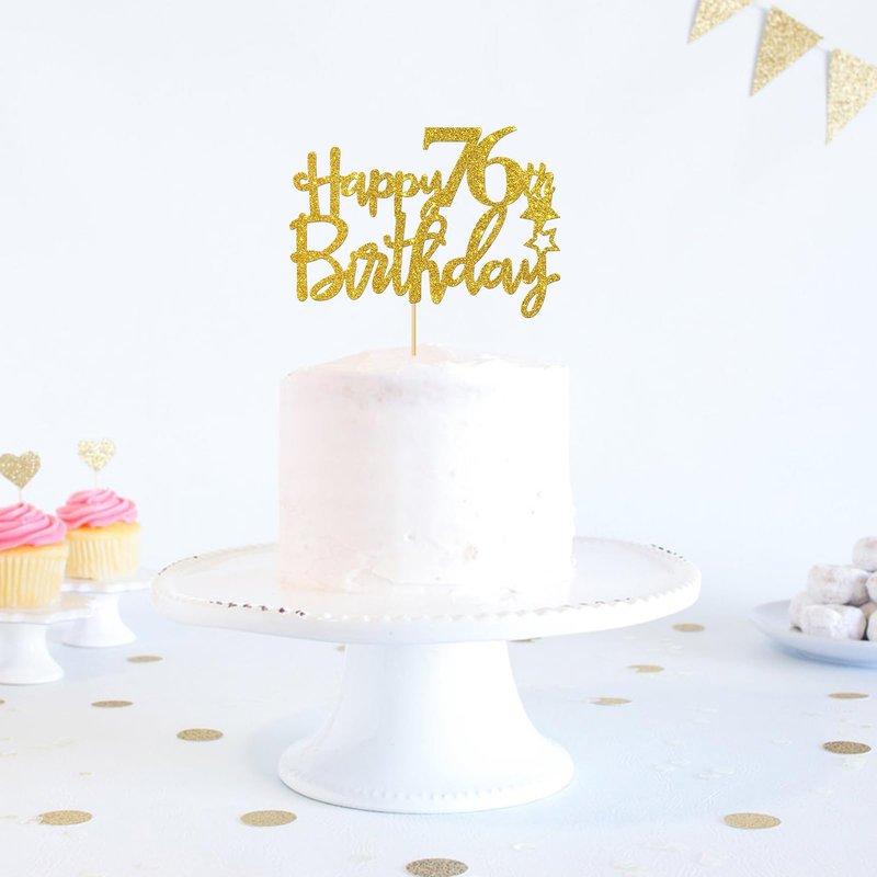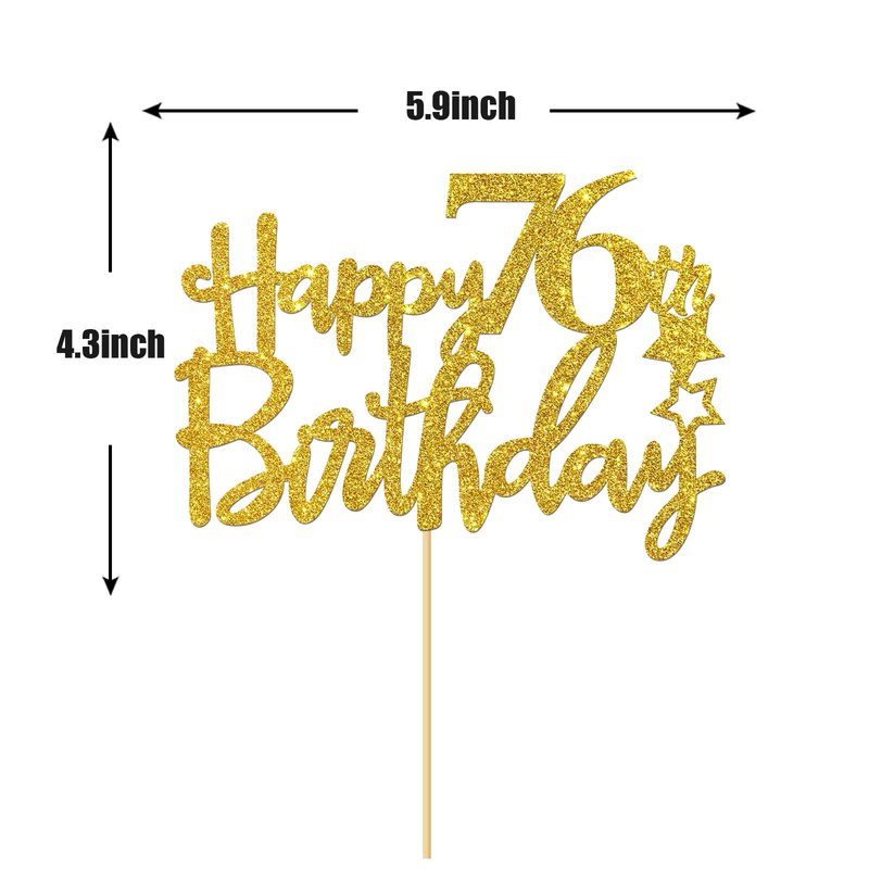 Gold Glitter Happy 76th Birthday Cake Topper - 76 Sign Cake Topper - Cheers to 76 Years Party Supplies - 76th Birthday Party Decorations