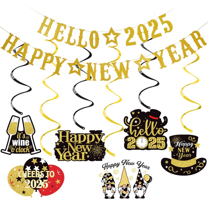 - 【Valuable Pack】You will get 1pcs Hello 2025 Happy New Year Banner and 6pcs 2025 new year hanging swirls, full of 2025 new year festival feeling.It is a must-have decorations to celebrate your 2025 new year party, brighten up your home party,express your joy for the upcoming 2025 new year eve party.