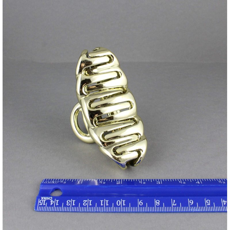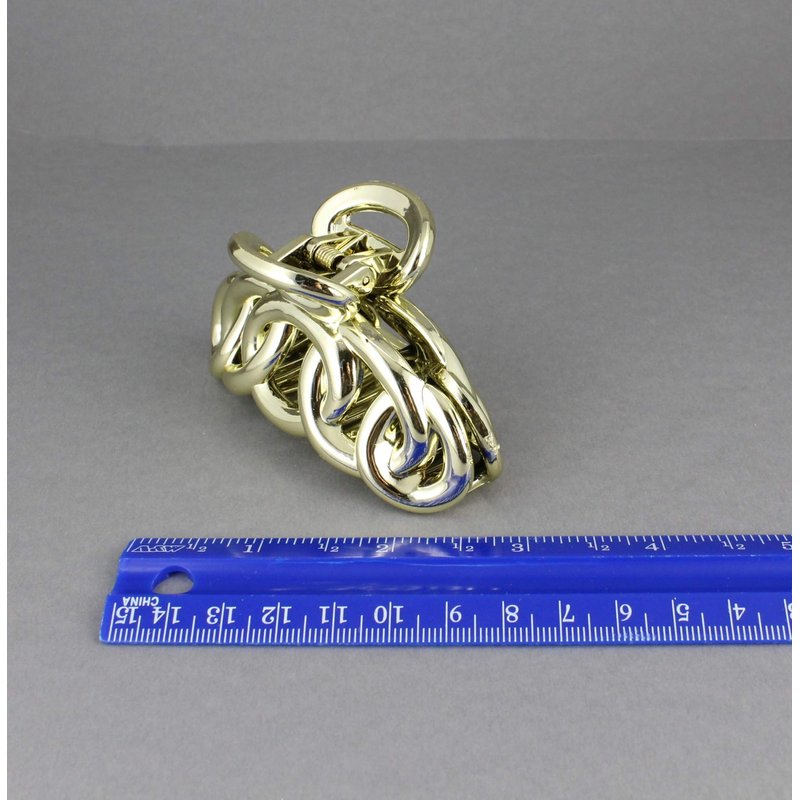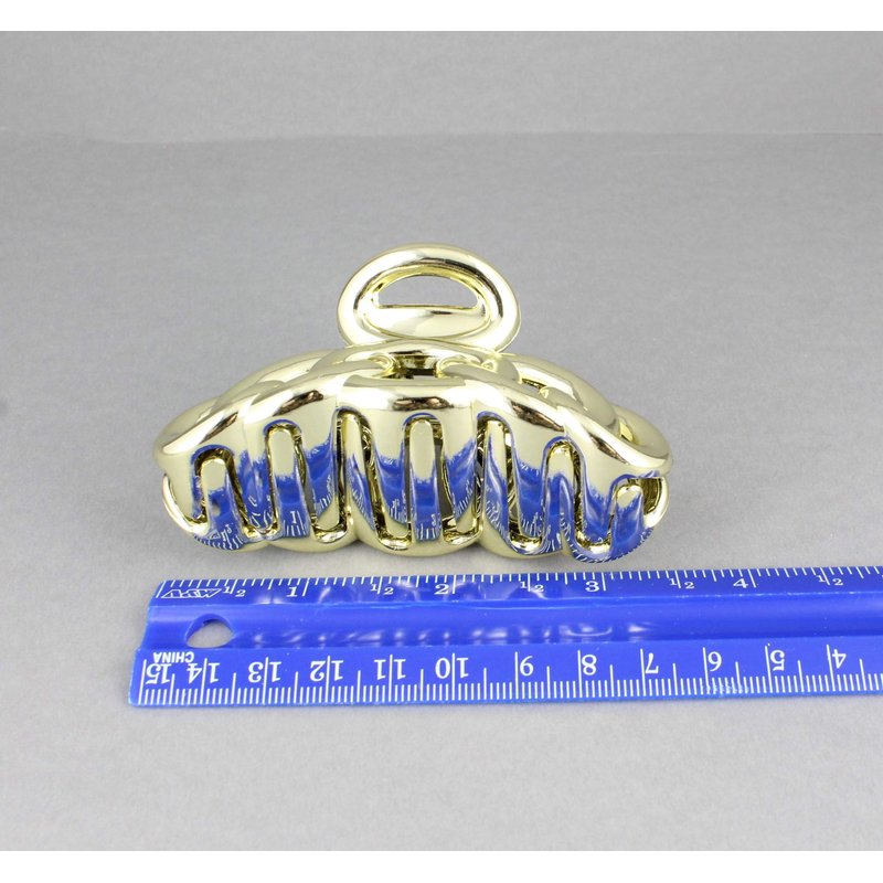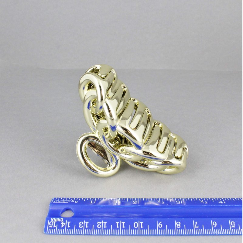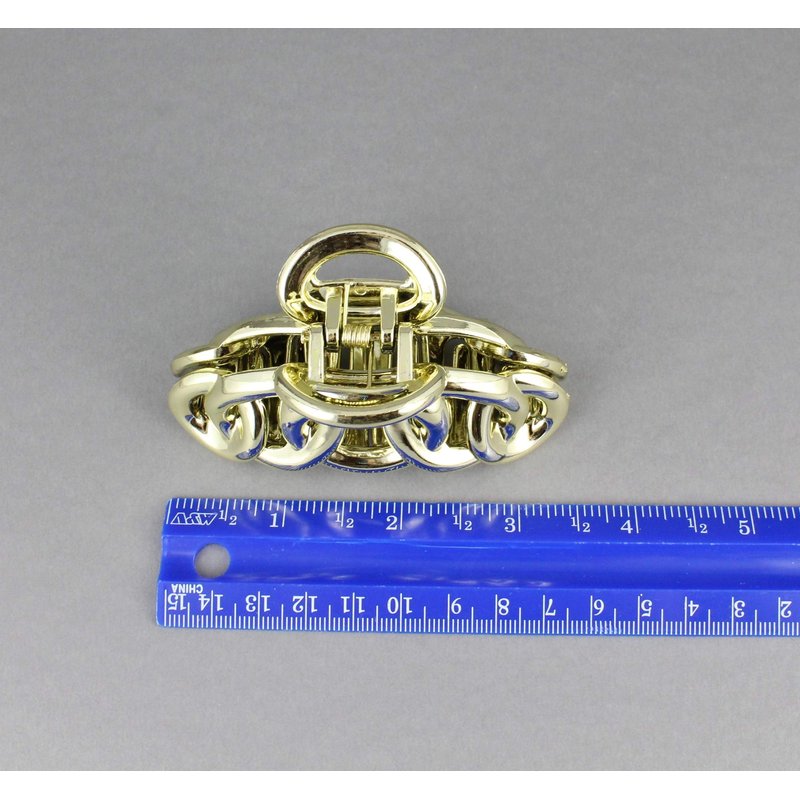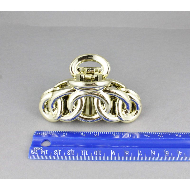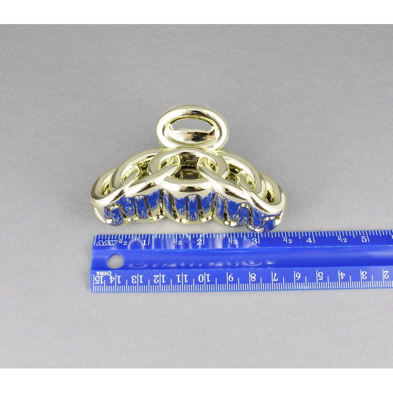 Gold hair clip plastic 3 3/8 inches long big barrette claw clamp oval chain link shiny