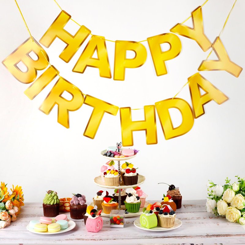 - High Quality Material: The gold happy birthday banner is made of high quality coated paper, sturdy, reliable, lightweight and reusable. Each banner measures approximately 7.7 inches long x 6.7 inches wide, perfect for birthday parties.