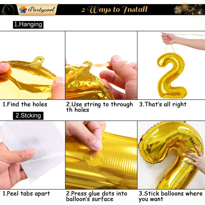- 🍾【Easy to Use】This gold number balloons can be easily inflated with helium or air, allowing for quick and hassle-free setup. Just follow the simple instructions and enjoy the festive spirit.The "2025" foil balloon acts as a dazzling firework, instantly setting the stage for the new year. Create ultimate festive environment for stunning pictures with 2025 new years banner backdrop and these globos de año nuevo 2025.
