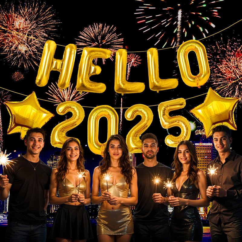 - Style: Hello 2025 Balloons style