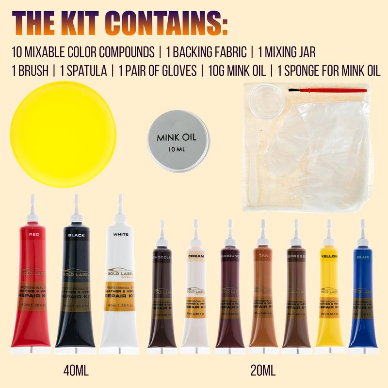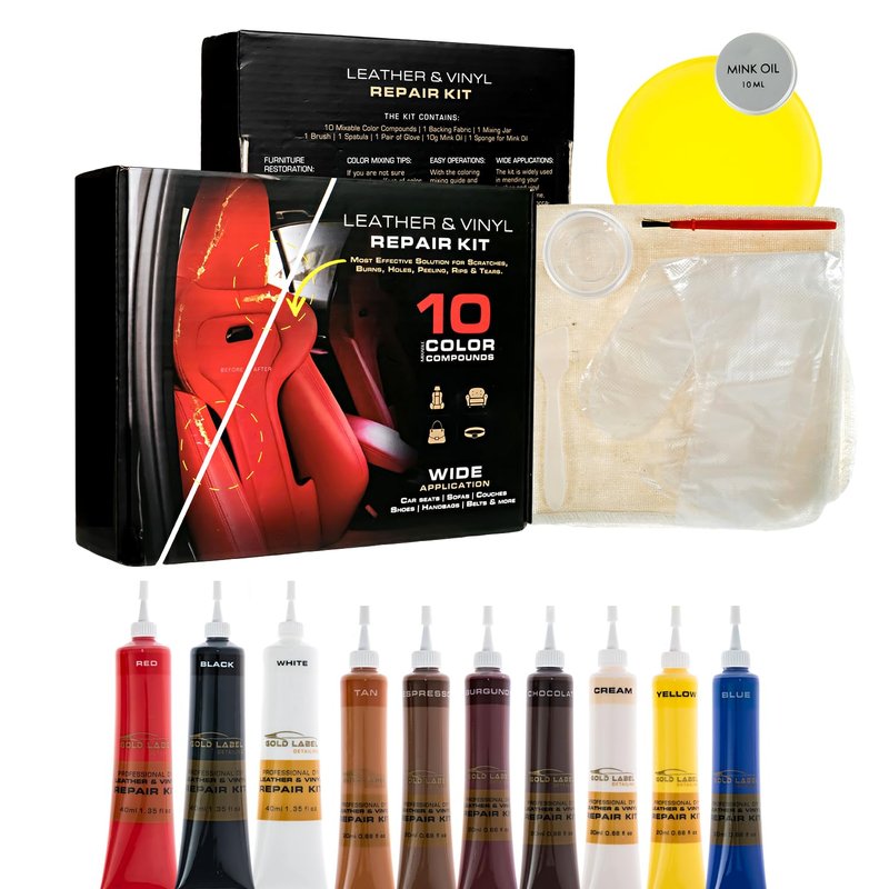 Gold Label Detailing Premium Vinyl and Leather Repair Kit - Restore Furniture, Jackets, Sofas, Car Seats, and Boats Effortlessly. Match Any Color, Repair Any Material with Super Easy Instructions