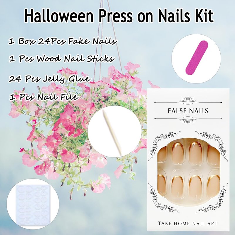 - Short Almond Nails Kit- Our French Tip press on nails is exquisite and cute. It contains 24 pcs glossy glue on nails and a set of DIY nail art tools. There are 12 different sizes of fake nails. You can choose the most suitable cute nails decor for yourself.