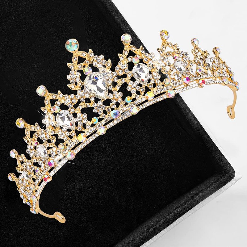 - BEAUTIFUL: Fashion tiara is gold AB rhinestones. Sparkling rhinestones headpiece can make you the brightest spot in the audience. Perfectly suit for any age women and teen girls. As a gift to your daughter or Mother will definitely make her the most gorgeous belle.