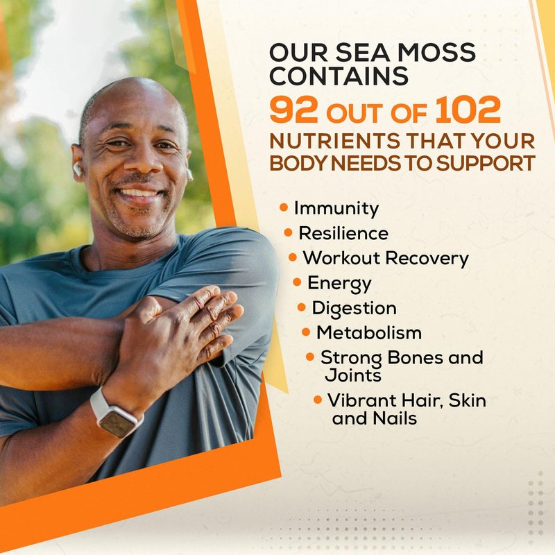 - Natural Collagen and Energy Booster: With 92 essential vitamins and minerals your body needs, seamoss raw organic supports immune system, smooth digestion & strong metabolism. Wildcrafted irish sea moss supportshair, bright & elastic skin and stronger nails. Just add or mix the seaweed gel to your daily tea, coffee, food or smoothie drink