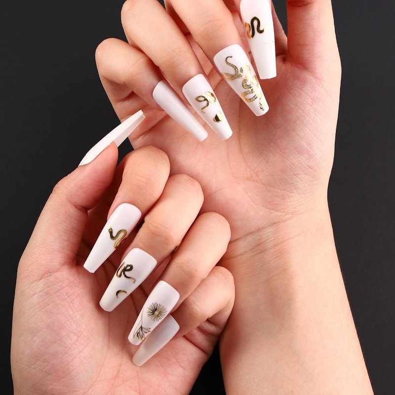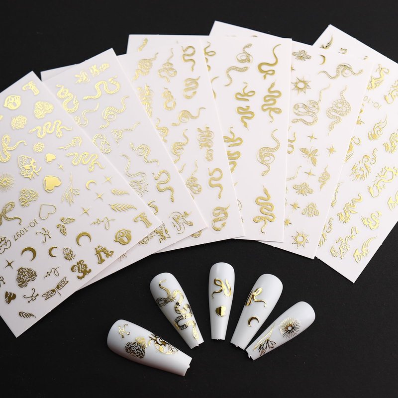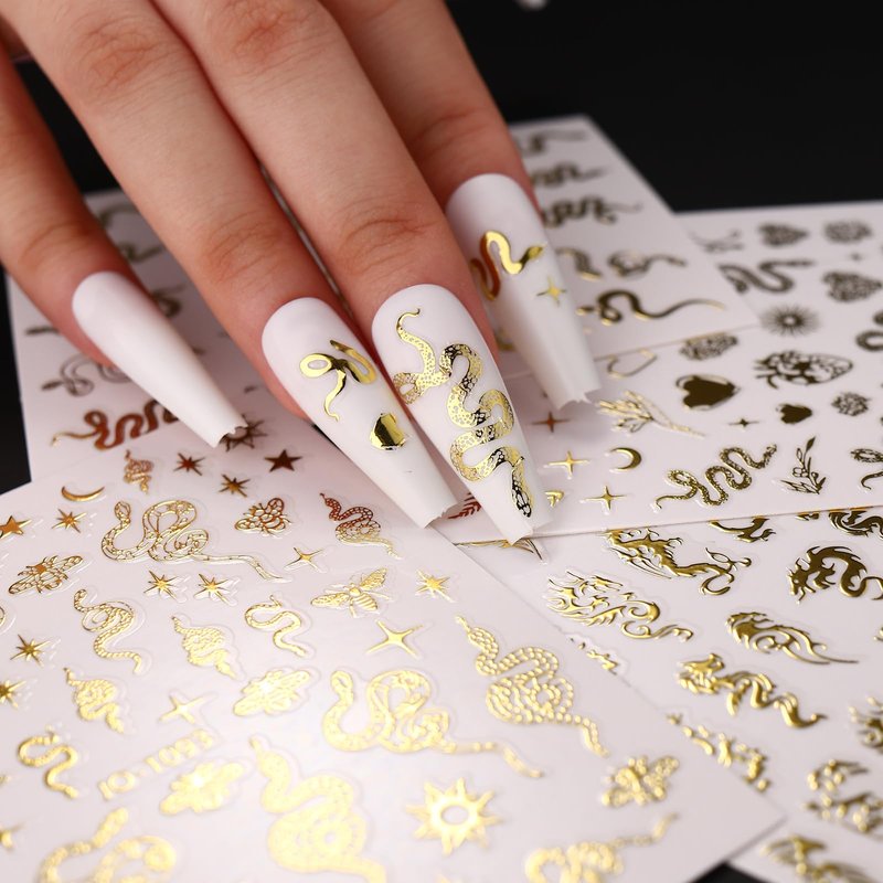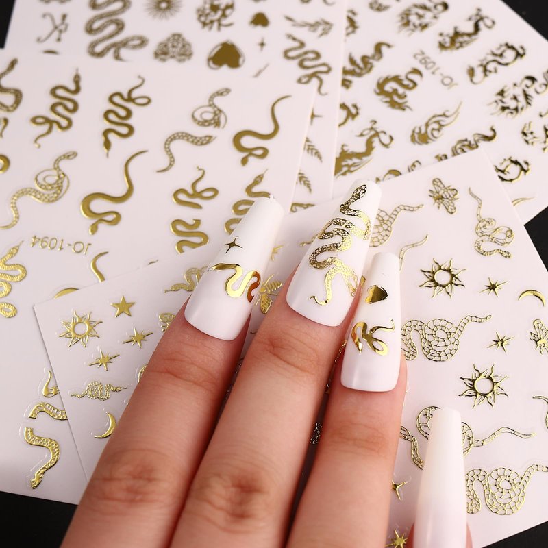 1. Luxury gold snake nail decals, very suitable for nails or nail tips. Suitable for most nails.