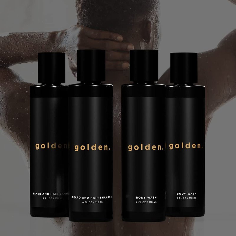 Golden Grooming Co. 3-in-1 Men's Body Wash 2-pack w/Shea Butter & Sunflower Oil - Father's Day Gifts for Dad - Hair & Beard Shampoo - Cleanses, Hydrates, Softens - For All Skin Types - 4FLOz