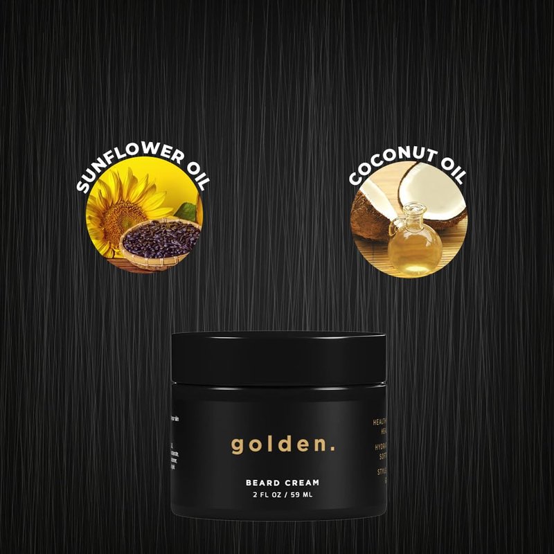Golden Grooming Co. Beard Cream - Hydrates, Moisturizes, and Tames Flyaway Hair - Beard Butter & Softener for Men - Nourishing Formula - Adds Shine - Formulated with Sunflower & Coconut Oil - 2 fl oz