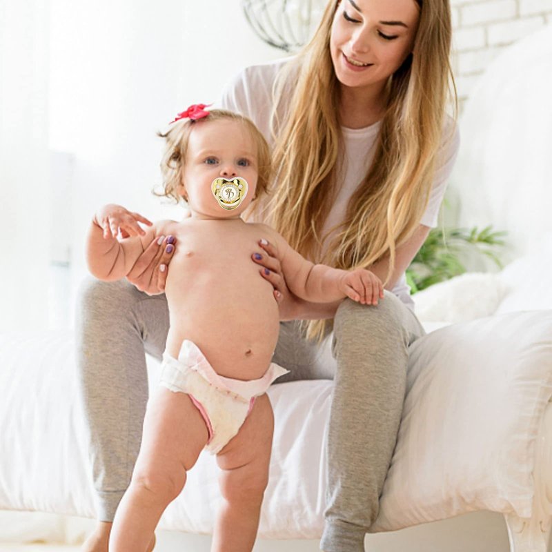 - Ergonomic And Safe: The golden pacifier adopts mellow design, which is ergonomic and reduces friction with the nose, safe and for baby to use.
