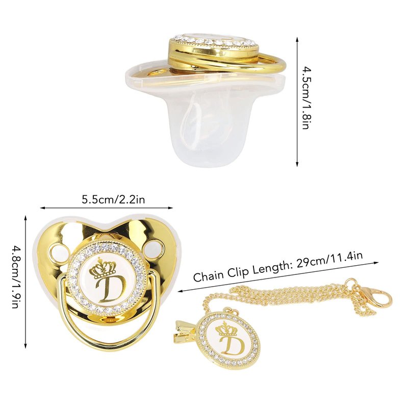 Golden Letter Baby Pacifier, Personalized Bling Pacifier with Pacifier Clips and Anti-Dust Cover for Baby Shower Newborn Birthday Photography(Letter D)
