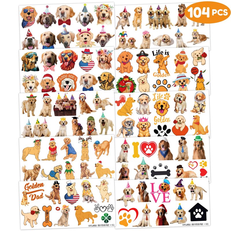 Golden Retriever Temporary Tattoos - 100 PCS Funny Cute Dog Themed Stickers for Kids Birthday Party Supplies, Decorations, Favors and Prizes - Cute Gifts for Boys and Girls