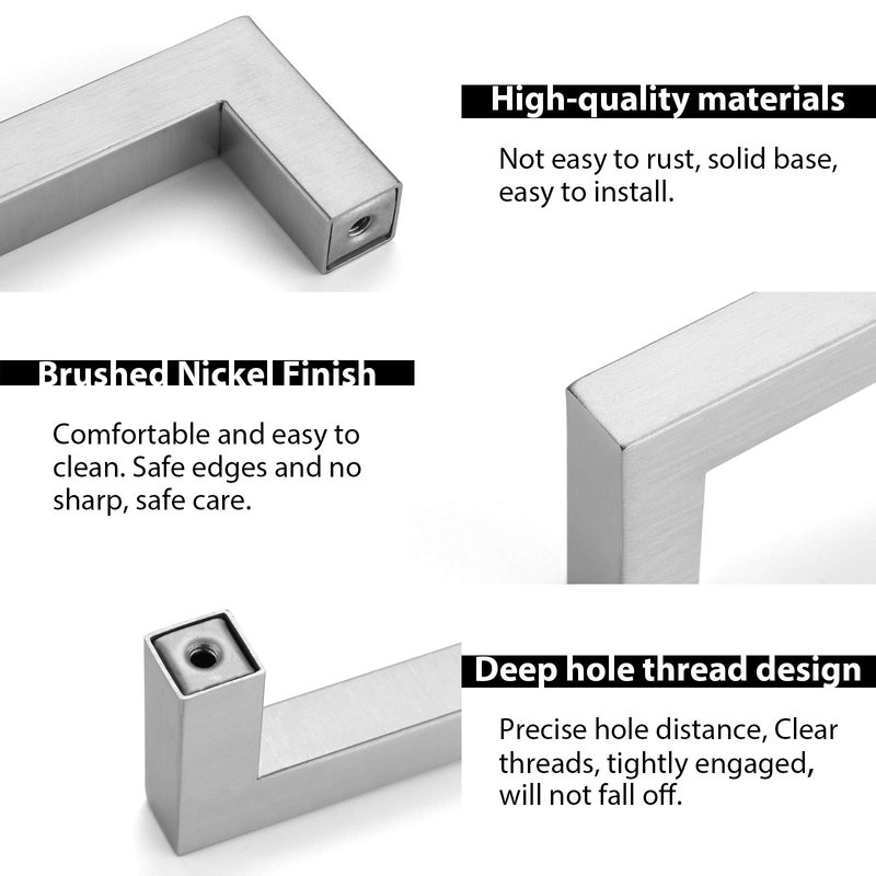 - Widely Compatible: Modern design of square cabinet handles, suitable for kitchen cabinet, cupboard, dresser drawers, closet, wordrobe, wooden furniture and so on. Every corner of your home should be careflly decorated.