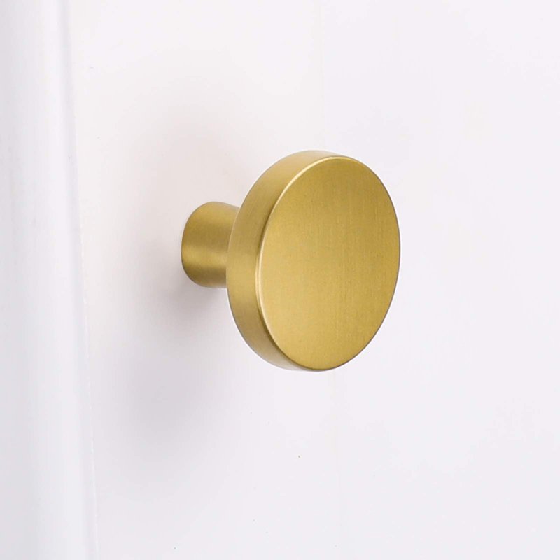 - TEXTURE & APPREARANCE: This knob has the same tone with goldenwarm brushed brass pulls, it is 100% made of zinc alloy, making your home décor looks modern and elegant, simply brighten your old cabinets and drawers! Comparing to other knobs, zinc alloy material brings more solid structure and smoother surface. Highly protective to children and elders, because there is NO SHARP EDGES on our product!
