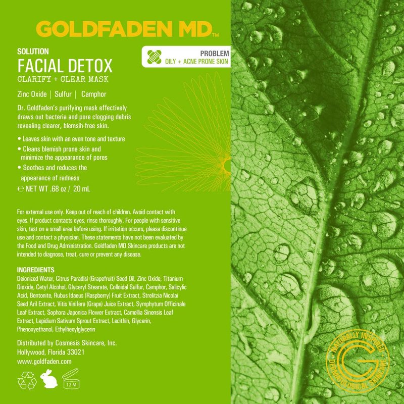 GOLDFADEN MD Facial Detox Mask | Clarifying Face Mask w/Zinc Oxide, Sulfur, Salicylic Acid & Grapefruit | Purifying Deep Clean | Minimizes the Appearance of Redness, Blackheads & Pores .5 fl oz