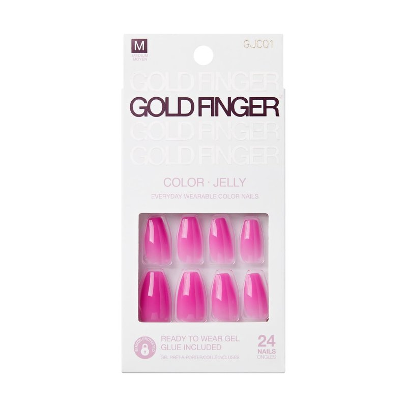 - 【GOLDFINGER CONVENIENT KIT】: The Kit includes Everyday Wearable Solid Jelly color & designed nails, pink gel glue (2mL), and a manicure stick.