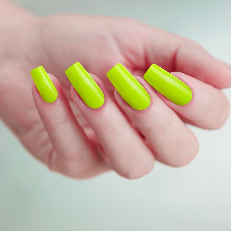 GoldFinger False Nails Kit, Ready to Wear Neon Yellow Fake Nails, Manicure Stick and Glue Included, Long Square Shape, Long-Lasting Hottest Trend Glue on Nails