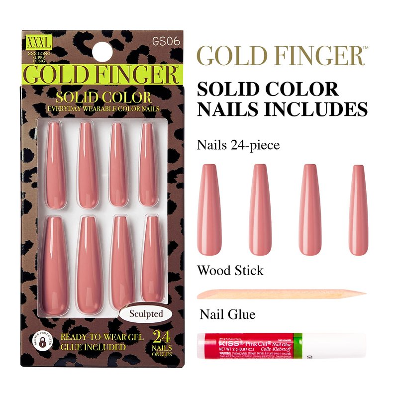 GoldFinger Press On Nails Full Cover Nails Glue On Nails Manicure Long Fake Nails with Glue