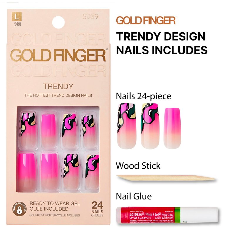 - 【GOLDFINGER CONVENIENT KIT】: The Kit includes Everyday Wearable Trendy color & designed nails, pink gel glue (2mL), and a manicure stick.