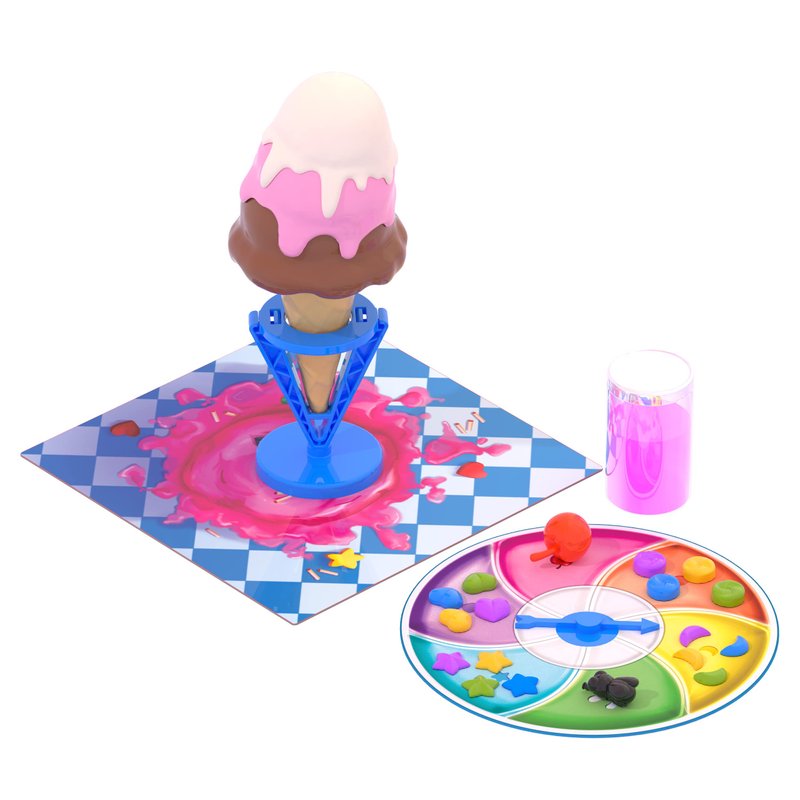 - Includes Gameboard to protect surfaces, 1 Spinner and Spinner Arrow, 18 Slime Charms, 1 Ice Cream Cone, 1 Cone Stand, 1 Ice Cream Slime in Resealable Container, and Complete Instructions