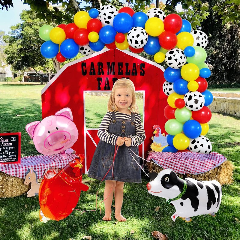 - TIME-SAVING PARTY SUPPLIES:You will get 91 pieces of farm birthday party supplies in total, kinds of balloons, farm theme backdrop, tablecloth, it is easy to meet your dinner guests' adornment needs; you could get rid of the stress of kinds of party planning and serve guests