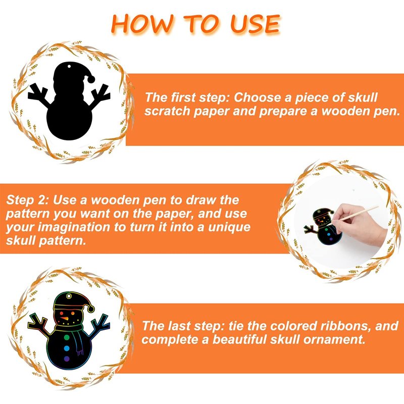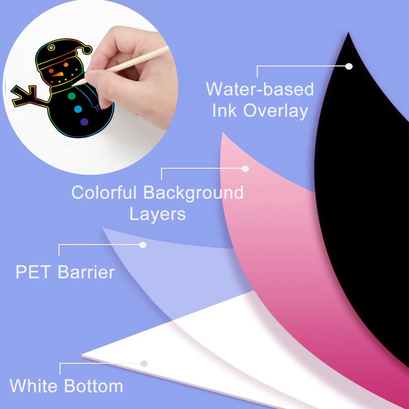 - 【Safty Drawing Materials】 These Christmas draft papers use non-toxic thick cardstock with a black coating on the surface. The scratch stick is made of wood, safe, environmentally friendly, robust, and not easy to fade and deform. No peculiar smell, non-toxic powder, children can safely make colorful Christmas paper Ornaments.
