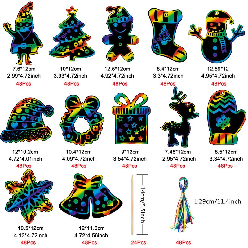 - Part Number: 48 Pieces Christmas Scratch Art