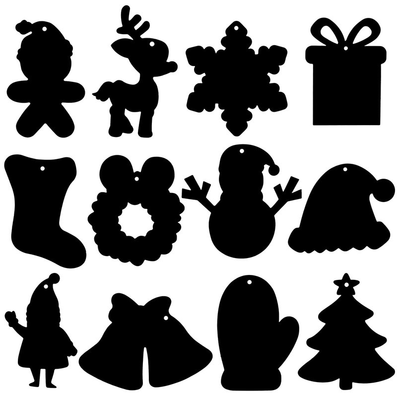 - 【Various Christmas Series Styles】 Package comes with 48 pieces Christmas scratch paper in different shapes, matching with 48 pieces ribbons and 24 pieces wooden sticks. 12 different shape Christmas series patterns including Santa Claus, Elk, snowflakes, Christmas wreath, Christmas bells, Christmas tree, Christmas hat, etc. Colorful and full of Christmas holiday atmosphere.