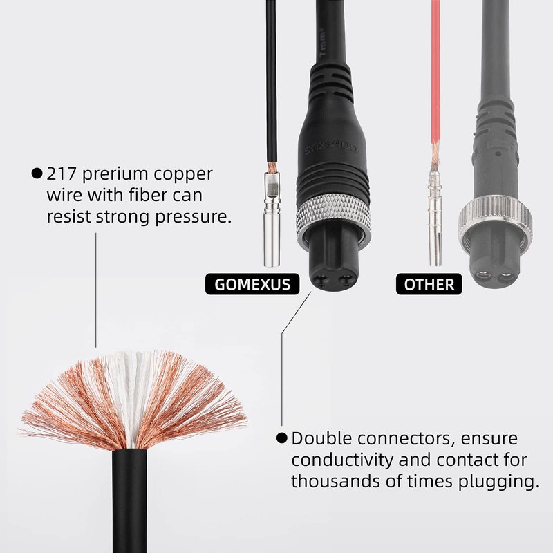 - 【Excellent Conductivity Guarantee】- ①Double connectors made of high quality copper, ensure conductivity and contact during saltwater fishing ②Copper tube wrapped at the junction between the wire and the connector,ensure the part of welding tin not easy be broken,in case the part of welding tin is broken,copper tube can ensure the conductivity ③Using high strength fiber material, resistance to tensile force will be improved ④Two wires are clearly separated,prevent wire breakage.