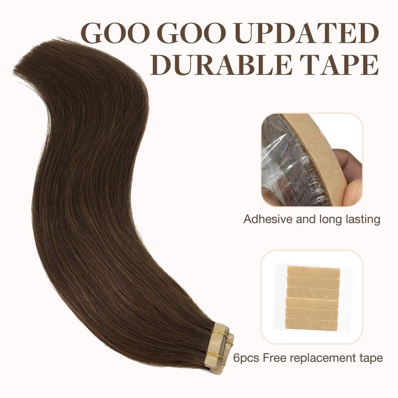 GOO GOO 20 inch Human Hair Extensions Tape in Chocolate Brown Real Natural Hair Extensions Tape in Skin Weft Silky Straight 50g 20pcs