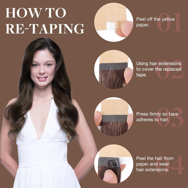 - High-Strength Tapes & Easy to Take Out-- Specially developed high-strength invisible tape. You can refer to our product page to take out the tapes. Tape in hair extensions specification: 1.5inch width, 20 Pieces, 50g Per Package. Recommend 2-3 sets for thick full head. 10-26inch available.