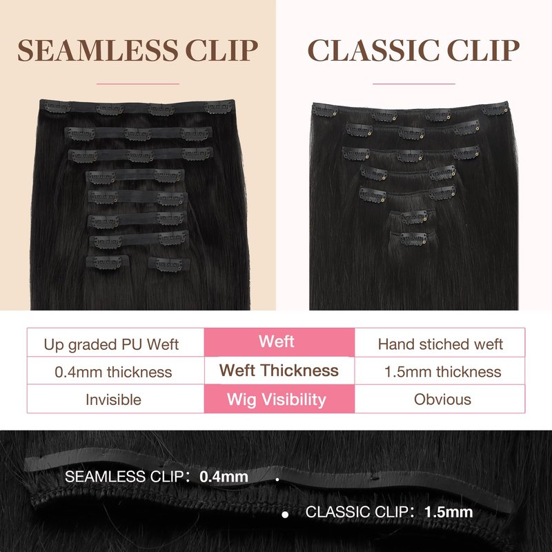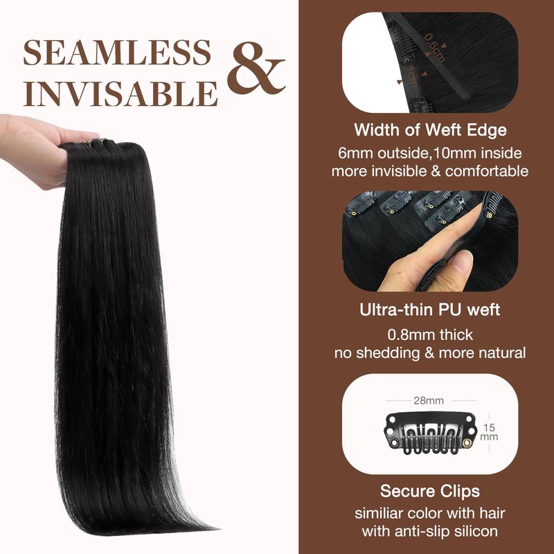 - High-Quality Clips for Quick Wear: Our clip in extensions boast slim, silicone-backed clips for a barely-there feel, securely stitched and cushioned with gentle rubber to safeguard your scalp and hair. The PU design makes the seamless clip in hair extensions more invisible, comfortable, natural, and lighter. They're a breeze to self-apply and remove, perfect for effortlessly transforming your look for any event, from weddings to parties to date nights.