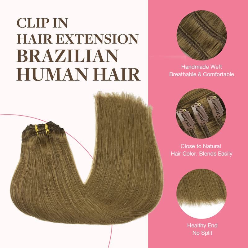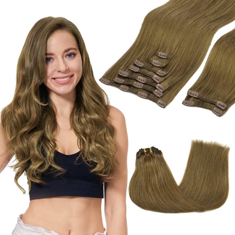 GOO GOO Clip in Hair Extensions Real Human Hair, 16inch 150g 9Pcs, 6B Medium Brown, Remy Human Hair Extensions Clip ins for Women, Natural Human Hair