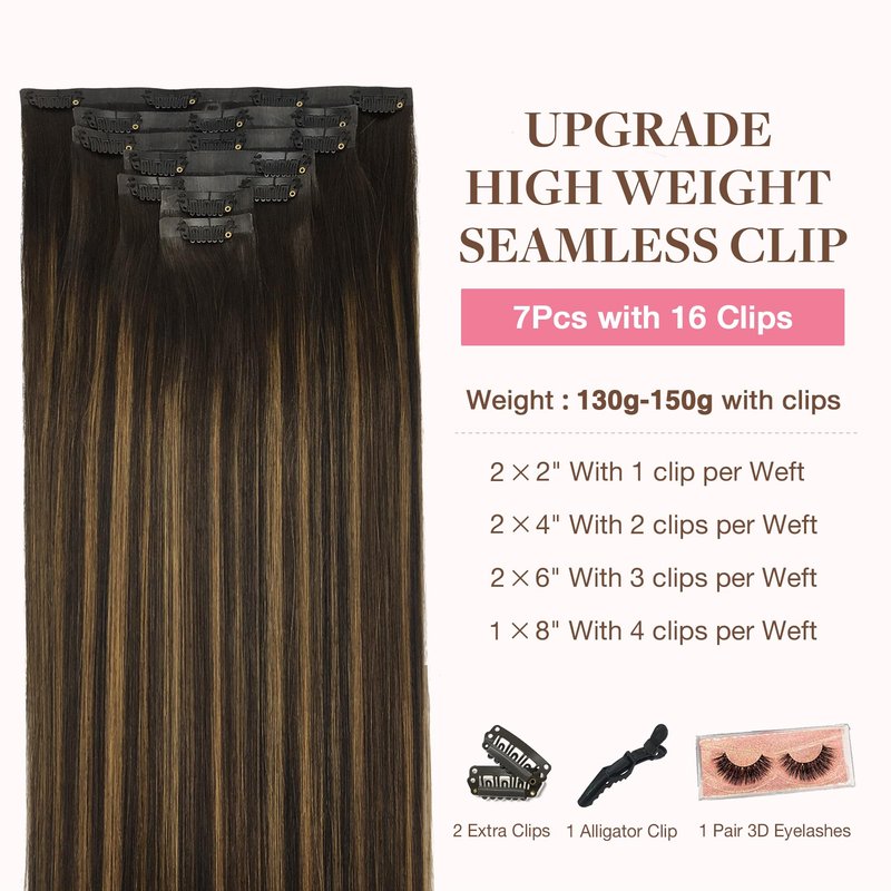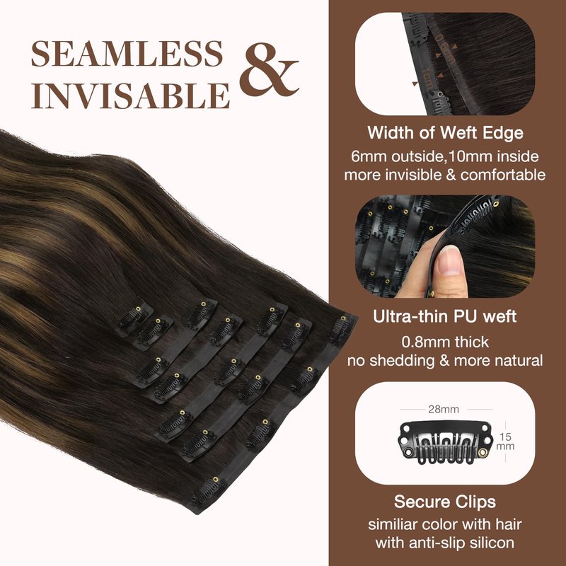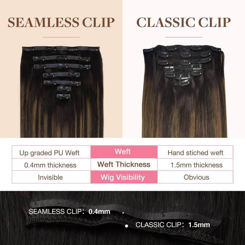 - High-Quality Clips for Quick Wear: Our clip in extensions boast slim, silicone-backed clips for a barely-there feel, securely stitched and cushioned with gentle rubber to safeguard your scalp and hair. The PU design makes the seamless clip in hair extensions more invisible, comfortable, natural, and lighter. They're a breeze to self-apply and remove, perfect for effortlessly transforming your look for any event, from weddings to parties to date nights.