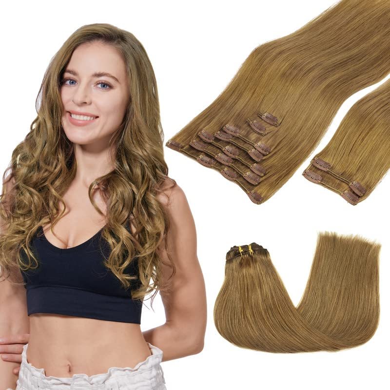 GOO GOO Clip in Hair Extensions Real Human Hair, 20inch 150g 9Pcs, 8C Ash Brown, Remy Human Hair Extensions Clip ins for Women, Natural Human Hair