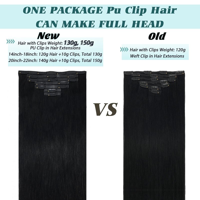 - Clip In Hair Extensions Specification: GOO GOO seamless clip-in hair extensions with PU are available in 110g, 130g, 150g; clip-in extensions are offered in weights of 120g and 150g for selection. Perfect for a natural thickness boost with 1-2 sets, or achieve a full, voluminous look with 2-3 sets. Ideal for adding both length and volume. Plus, 2 additional replacement clips for your convenience.