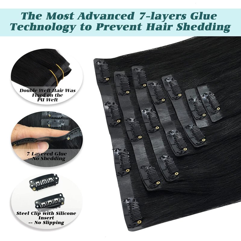 - High-Quality Clips for Quick Wear: Our clip in extensions boast slim, silicone-backed clips for a barely-there feel, securely stitched and cushioned with gentle rubber to safeguard your scalp and hair. The PU design makes the seamless clip in hair extensions more invisible, comfortable, natural, and lighter. They're a breeze to self-apply and remove, perfect for effortlessly transforming your look for any event, from weddings to parties to date nights.