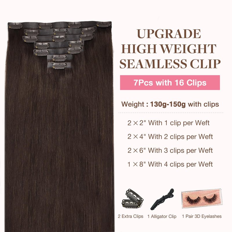 - Clip In Hair Extensions Specification: GOO GOO seamless clip-in hair extensions with PU are available in 110g, 130g, 150g; clip-in extensions are offered in weights of 120g and 150g for selection. Perfect for a natural thickness boost with 1-2 sets, or achieve a full, voluminous look with 2-3 sets. Ideal for adding both length and volume. Plus, 2 additional replacement clips for your convenience.