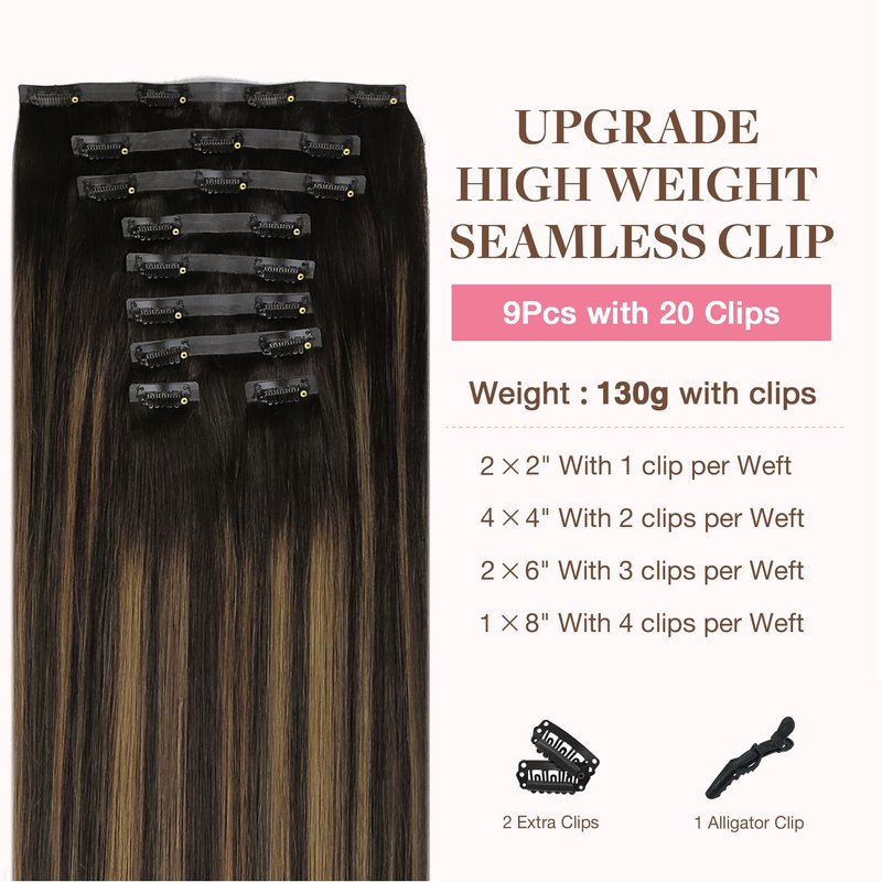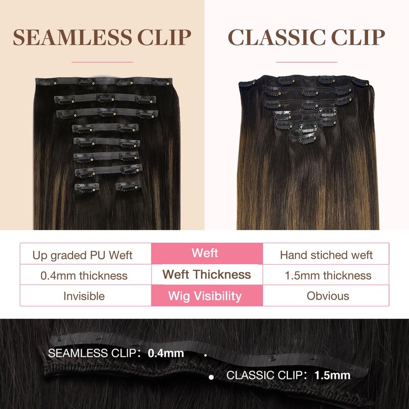 - High-Quality Clips for Quick Wear: Our clip in extensions boast slim, silicone-backed clips for a barely-there feel, securely stitched and cushioned with gentle rubber to safeguard your scalp and hair. The PU design makes the seamless clip in hair extensions more invisible, comfortable, natural, and lighter. They're a breeze to self-apply and remove, perfect for effortlessly transforming your look for any event, from weddings to parties to date nights.