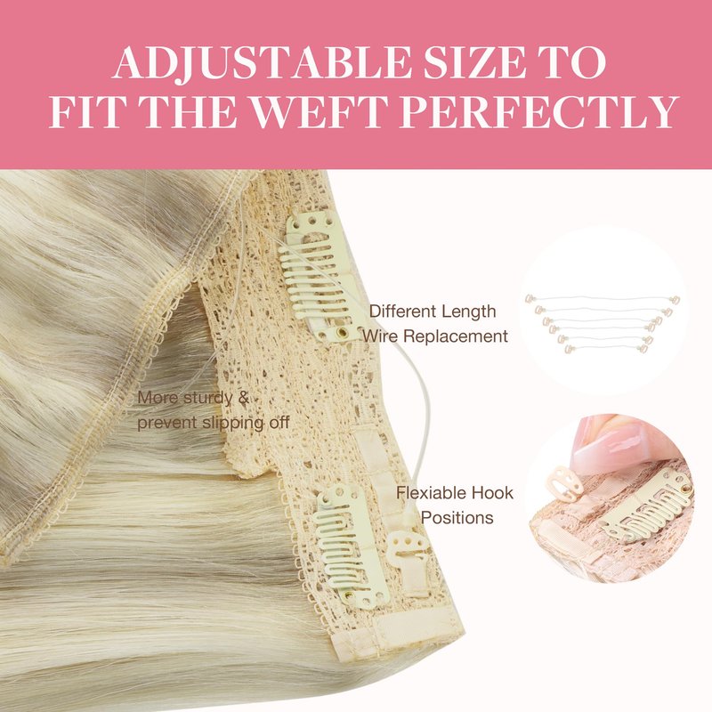 - 【More Comfortable & Natural & Lighter, Human Hair--Can Be Styled】Unlike traditional hair extensions, this new wire hair extensions is no tape no glue, with transparent wire, can blend perfectly with your hair color. And weft’s width is made according to measure head circumference which is 10.9inch. 100% human hair, you can style the hair according to your preference for many different occasions.