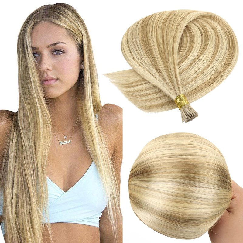 GOO GOO I Tip Hair Extensions Real Human Hair, 22inch 50g 50S, Cold Fusion I Tip Hair Extensions, Invisible Remy Hair Extensions, 16/22 Light Blonde Highlighted Golden Blonde