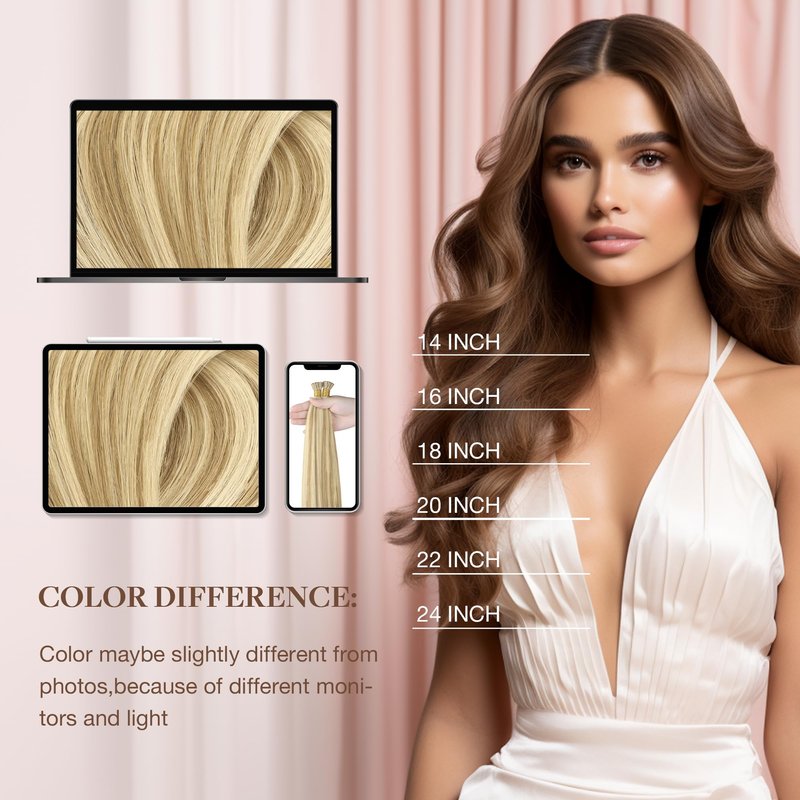 - Fit Weight & Versatile Lengths: Each pack weighs 50g. Whether you desire 14-16 inches (100 strands) or 18-24 inches (50 strands), our I Tip human hair extensions 50g ensure a tailored fit. If your hair is thick, need 1-2 packs, If your hair is thin, need 3-4 packs.