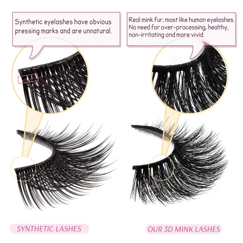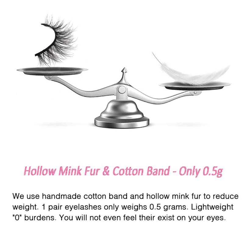 - 4.【Only 0.5g - Light Weight】-- Each pair of mink eyelashes only weigh 0.5 grams. Lightweight "0" burdens. Cruelty-free Mink fur. These fine fibers come from the tails of artificial breeding minks' natural falling hair and are sanitized and dyed before they're packaged as easy-to-install eyelashes.