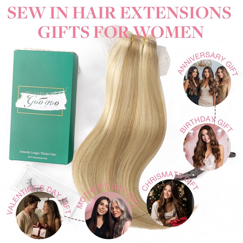 - Premium 100% Real Human Hair Sew in Hair Extensions: GOO GOO weft hair extensions are meticulously crafted from the finest human hair, offering salon-quality, silky, professional human hair that ensures a soft, silky, and natural look, seamlessly blending with your own hair. The double weft design provides uniform volume distribution. Our weft hair extensions boast salon-quality and are known for their durability, capable of lasting for several weeks with proper care and maintenance.