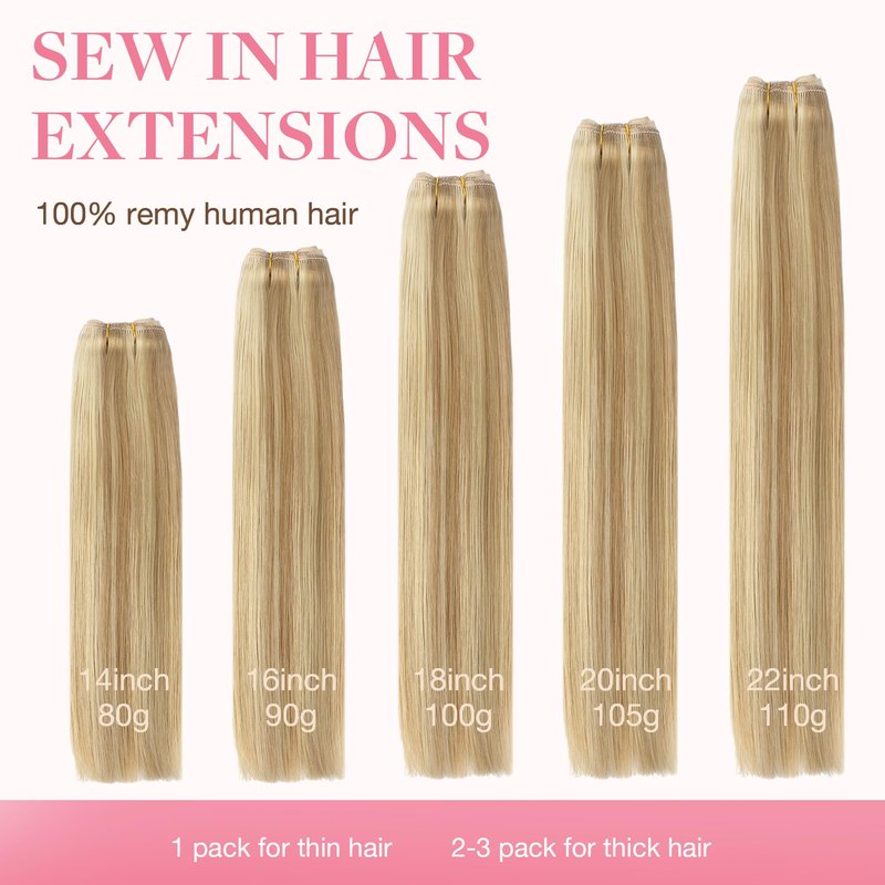 - Enhanced Double Weft for Unbeatable Volume & Thickness: Experience unbeatable volume and thickness with our Enhanced Double Weft technology, ensuring even hair distribution. Our breathable wefts provide a seamless, natural look with full, healthy hair. Stand out with various lengths and weights: 14" (80g), 16" (90g), 18" (100g), 20" (105g), 22" (110g). Customize your look: for thick hair, use 2-3 packs for length, 1-2 for thickness; for thin hair, use 2-3 packs for thickness, 1-2 for length.