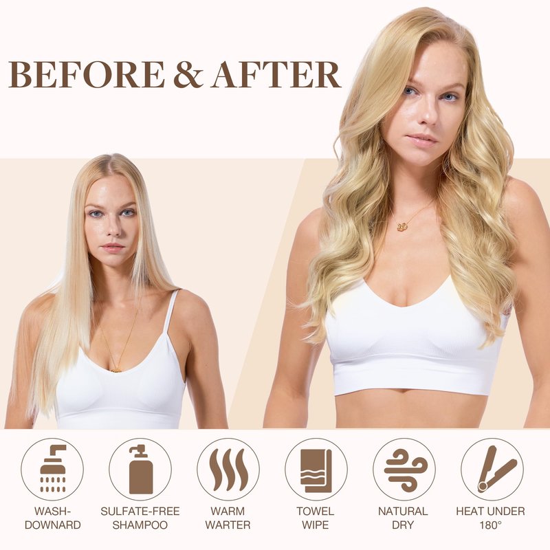 Our extensions come in a silky straight texture, but can be easily curled or waved to suit your styling preferences.
